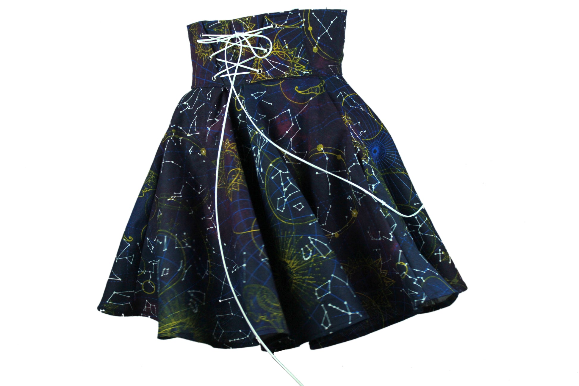 Vintage Inspired, Renaissance, Cottagecore, High Waisted, Circle Corset Skirt Cosplay, Goth, Dark Academia, Gothcore, Fairycore, Goblincore, Kawaiicore, Knee Length, Galaxy, Galaxia, Space