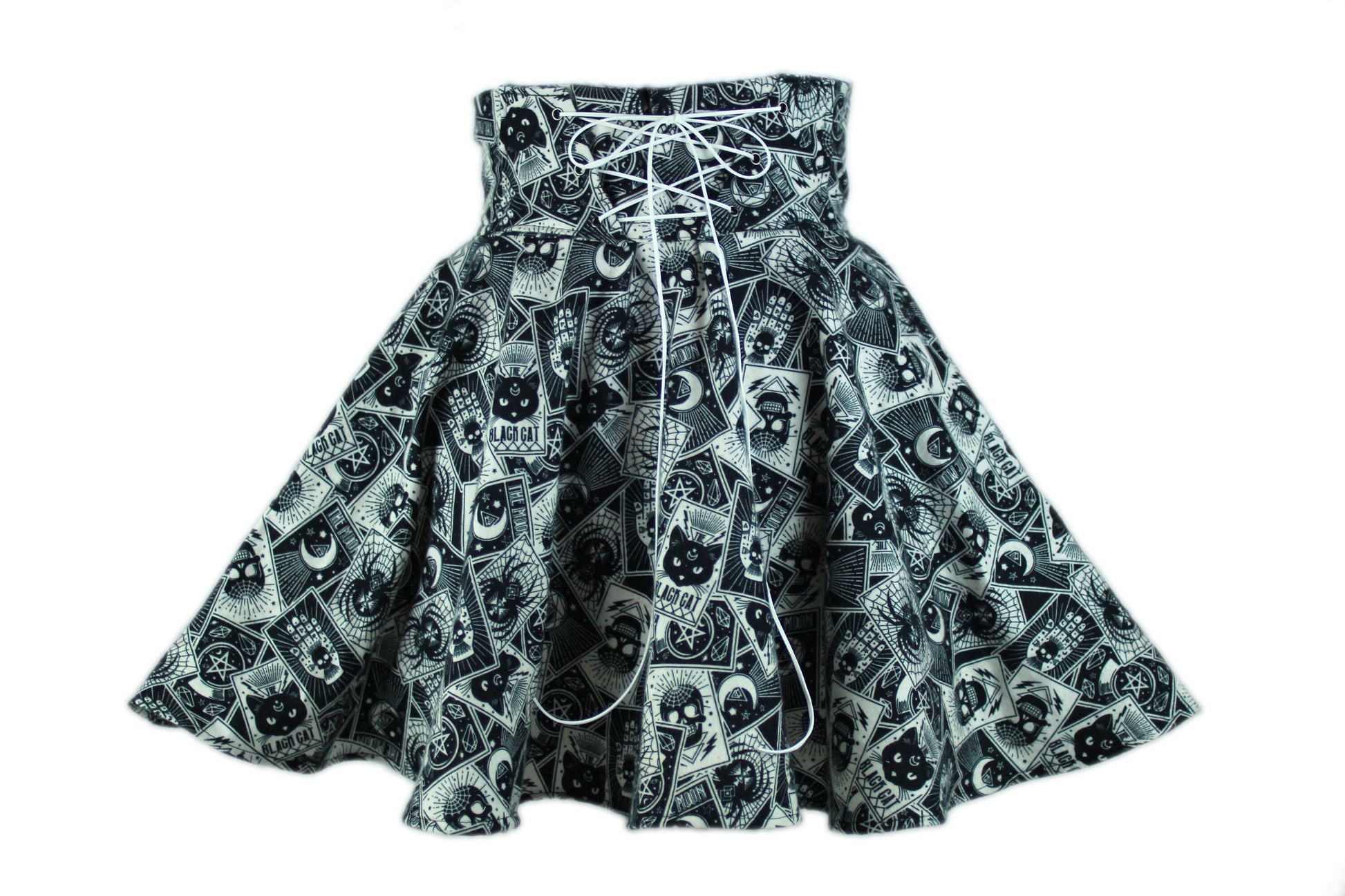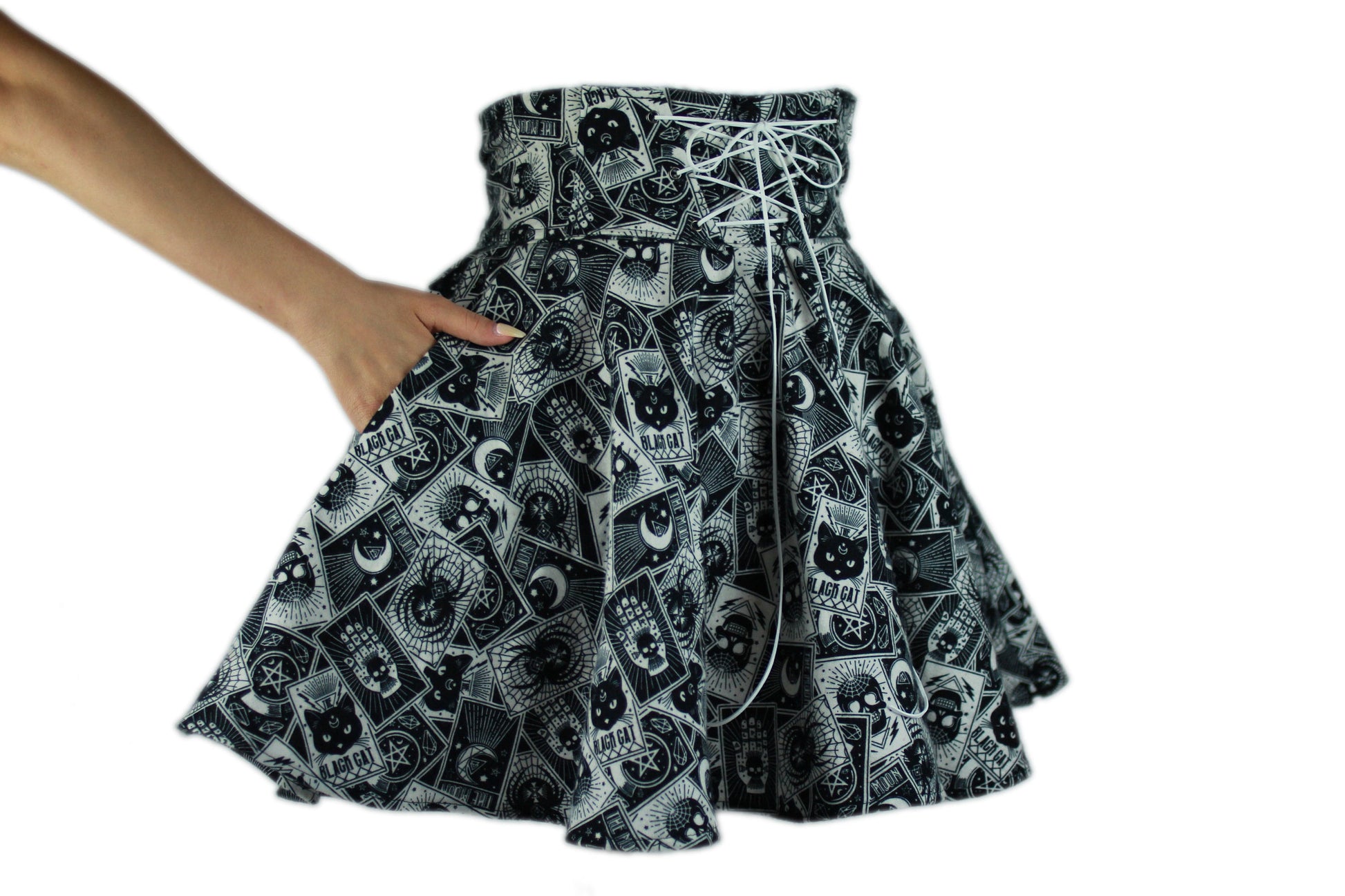 38in Skirt with 1 Zippered/1 Regular Pockets (Large) - Divination No. 13 - Handmade High Waisted Adjustable Waist Circle Skirt with BIG Pockets